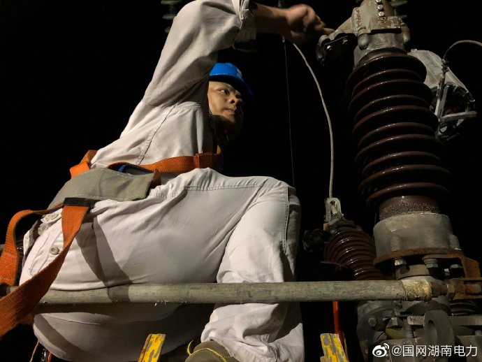 8月3日凌晨,國(guó)網(wǎng)湖南省電力有限益陽(yáng)供電分公司變電檢修檢修公司變電檢修班員工陳思勃正在抓緊時(shí)間消除35千伏泥石線4063隔離開關(guān)B相觸頭發(fā)熱缺陷。