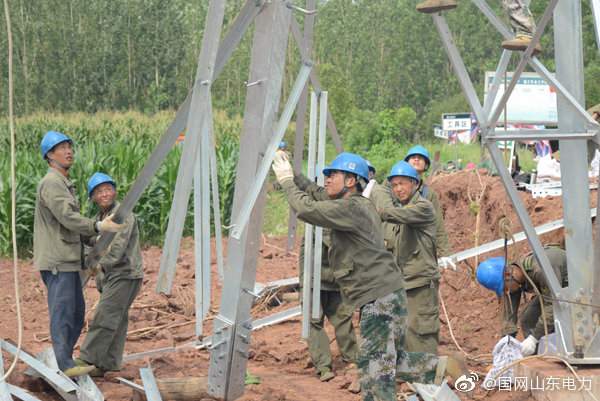 【加快重點(diǎn)線路建設(shè) 助力經(jīng)濟(jì)發(fā)展】8月6日,國(guó)網(wǎng)莒縣供電公司工作人員在莒縣碁山鎮(zhèn)水由村組裝35千伏招賢至安莊輸電線路鐵塔,在烈日的炙烤下,鐵塔變得滾燙,工作人員克服酷暑堅(jiān)持在高空中完成施工作業(yè),為線路早日投運(yùn)奠定基礎(chǔ)。 ????