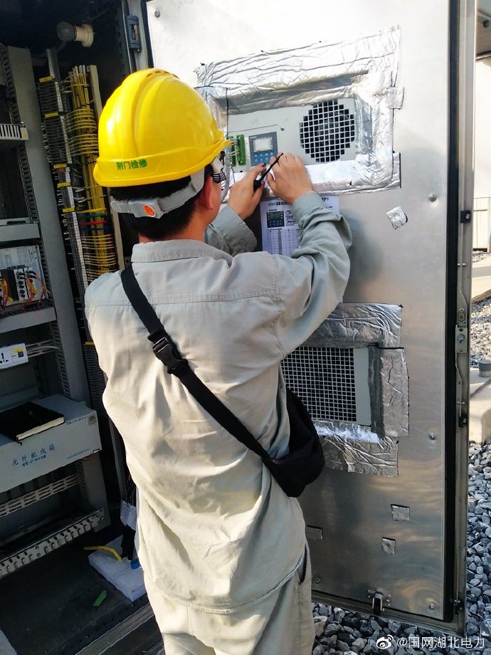 【設(shè)備發(fā)燒,他們緊急出動】炎炎酷暑,電力設(shè)備卻“發(fā)了燒”,這下可急壞了“電醫(yī)生”。8月12日,國網(wǎng)荊門供電公司110kV迎春變電站棗春線智能組件柜內(nèi)空調(diào)損壞,柜內(nèi)溫度達(dá)到了58℃。檢修分公司二次檢修班“電醫(yī)生”急忙“出診”,找準(zhǔn)病根,頂著烈日開始“治病”:更換柜內(nèi)空調(diào)。量取電位、拆除二次接線、拆開智能組件柜門、更換空調(diào)、恢復(fù)二次接線……歷經(jīng)2個小時,空調(diào)更換完畢,該智能組件柜迅速“退燒”,恢復(fù)正常溫度35℃。