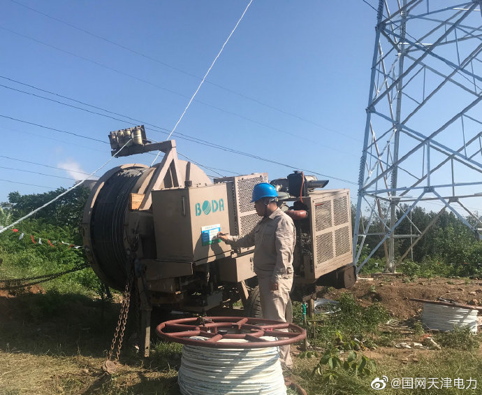 檢查薊州徐各莊35kV變電站擴(kuò)工程架空部分張力機(jī)狀態(tài)