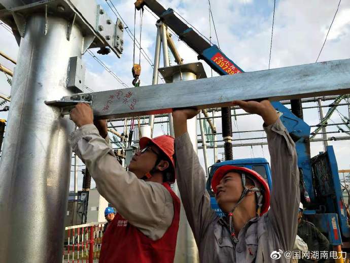 昨日,邵陽變電檢修人員在220千伏赧水變開展220千伏隔離開關安裝工作。烈日炎炎,可電力蜀黍絲毫不減工作熱情,用實際行動為電網建設貢獻力量。