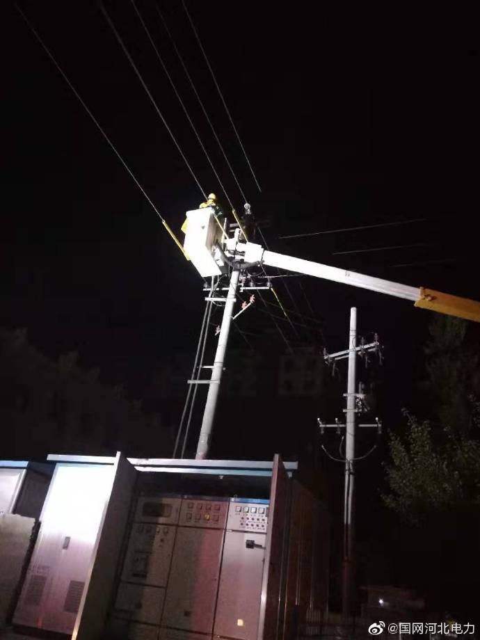 深夜搶修,帶電作業(yè)。9月4日晚,國網晉州市供電公司接到報修電話,帶電作業(yè)班立即集合趕往現場查找故障點,開展消缺作業(yè),及時恢復供電,確??蛻粽Ia生活用電。