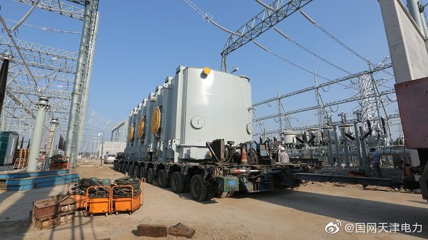 國網(wǎng)天津建設(shè)公司:天津渠陽(寶北)500kV變電站工程首臺三相一體500千伏主變壓器順利上臺就位