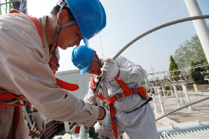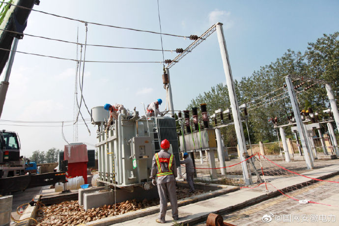 9月6日,電力工程技術(shù)人員正在對渦陽35千伏順河變電站進(jìn)行檢修消缺。