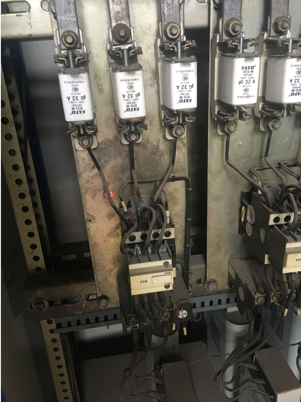故障情況:三相電機(jī)缺相,損壞電容接觸器未按要求壓接銅鼻子;故障原因:塑殼斷路器進(jìn)線端螺絲未緊固,橫聯(lián)母排螺絲松動(dòng),低壓缺相。