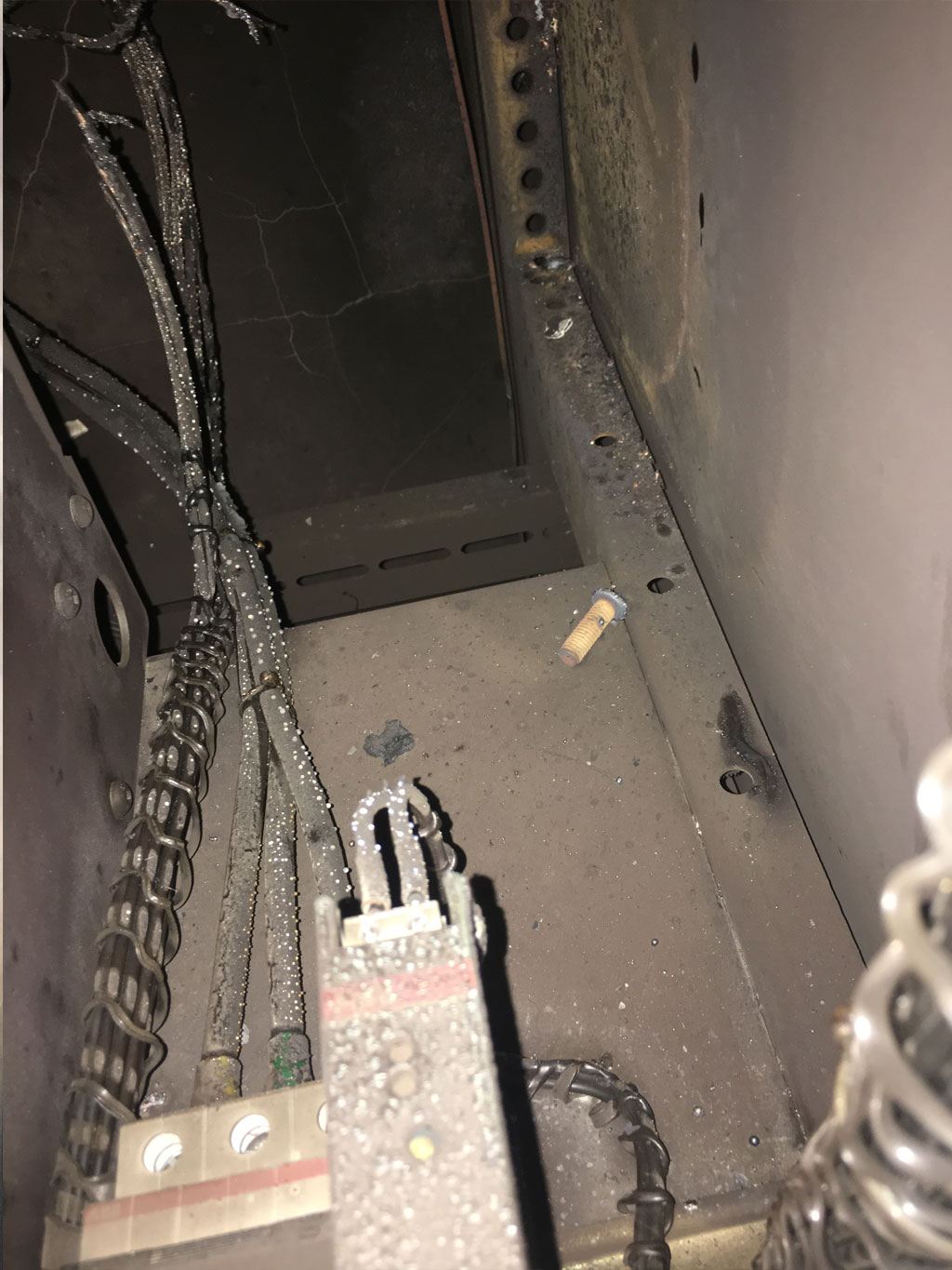故障情況:箱式變電站低壓側(cè)電流互感器故障引發(fā)低壓側(cè)短路,導(dǎo)致變壓器AC相短路,現(xiàn)場(chǎng)一臺(tái)1000kva變壓器直接損壞,軸頭線圈直接熔斷。