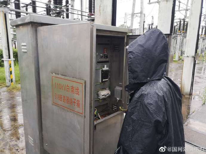 6月10日16時,株洲地區(qū)突降暴雨,國網株洲供電公司變電運維四班汪鶯、覃仕樾迅速趕到220kV白馬垅變電站進行防汛特巡,重點對變電站電纜溝、排水通道、室外端子箱進行全面檢查,確保變電設備安全可靠運行。