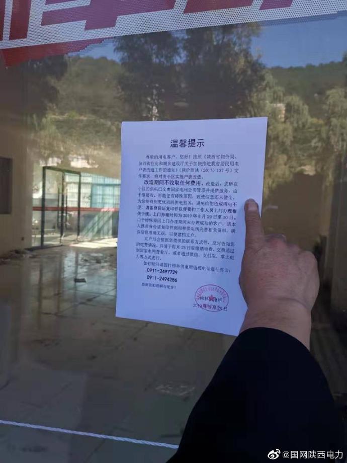 【積極開(kāi)展戶表改造宣傳】“大爺,戶表改造期間不收取任何費(fèi)用,用了多少電,賬上還有多少錢,看看手機(jī)就知道了”。8月29日國(guó)網(wǎng)延安供電公司 南泥灣景區(qū)供電服務(wù)站員工在寶塔區(qū)柳林高坡宣傳戶表改造和遠(yuǎn)程費(fèi)控電能表,為改造工作的實(shí)施營(yíng)造良好氛圍,讓廣大電力客戶盡快用上明白電、放心電。