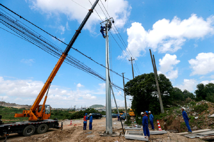 【線路升級改造 提升供電可靠性】4月29日, 國網(wǎng)五蓮縣供電公司輸電工作人員對110 千伏招莞寶線新立桿塔進行附件安裝工作。本次工程共計新立鐵塔8基,對2.2公里線路進行了加高改造,避免了線路走廊2萬余棵樹木的砍伐。改造完成后,將進一步優(yōu)化電網(wǎng)運行方式,提升供電可靠性。 ????