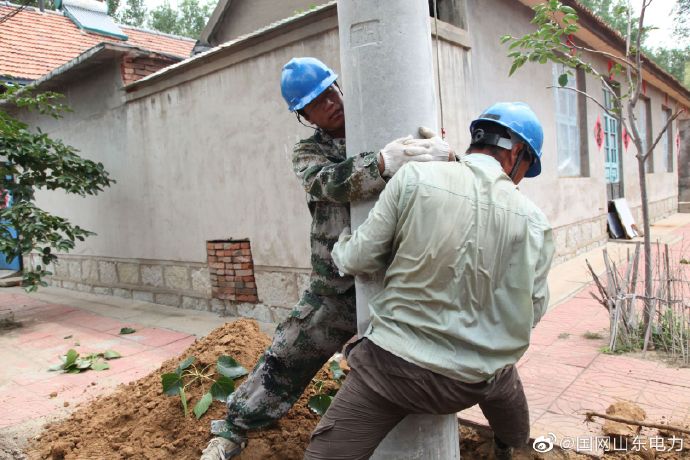 東阿縣供電公司新架設(shè)電桿5基、絕緣導(dǎo)線1000米