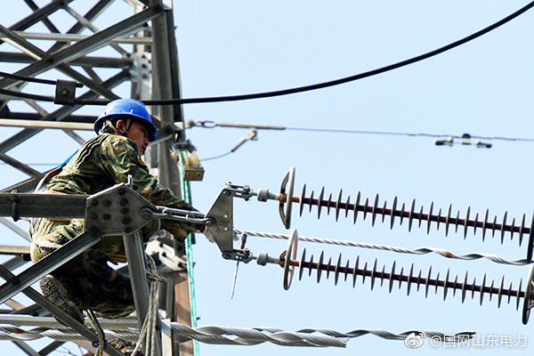 【秋日驕陽熱意濃 帶電消缺保供電】9月5日,濟南市濟陽區(qū)最高氣溫達到31℃,國網(wǎng)濟南市濟陽區(qū)供電公司員工在半空中全副武裝作業(yè),對10千伏曲東線工業(yè)園支線6號桿進行帶電消缺,更換出現(xiàn)故障的隔離刀閘設備線夾,確保該線路安全運行、可靠供電。 ????