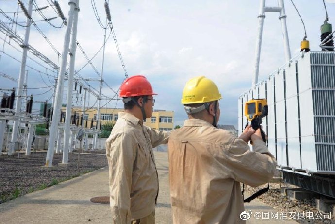 【變壓器前衣衫濕】8月1日午后,國(guó)網(wǎng)盱眙縣供電公司110千伏梁營(yíng)變電站無(wú)遮無(wú)擋,氣溫高達(dá)三十七八度。主變壓器本身就是一個(gè)約摸五十六度的散熱體,巡視人員衣衫盡濕。近日,持續(xù)高溫,盱眙電網(wǎng)負(fù)荷也兩創(chuàng)新高。當(dāng)?shù)毓╇妴T工也卡在負(fù)荷最高值前后,對(duì)電網(wǎng)設(shè)備進(jìn)行巡視、測(cè)溫,確保電網(wǎng)安全、群眾清涼度夏。