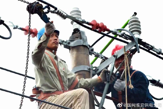 【冒雨搶修顯真情】 8月27日上午,淮安盱眙縣供電公司組織員工冒雨搶修遭雷擊損壞的穆店鎮(zhèn)10千伏179加油站線。 據(jù)悉,當(dāng)日上午8時(shí)41分,穆店鎮(zhèn)10千伏179加油站線2號(hào)桿遭雷擊,B相、C相導(dǎo)線同時(shí)斷落,盱眙縣供電公司迅速組織人員冒雨搶修,9時(shí)55分完成搶修任務(wù),及時(shí)恢復(fù)正常供電。