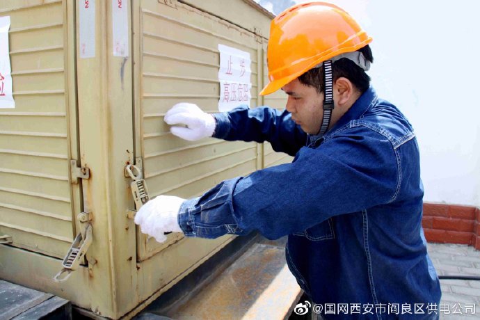 7月2日國網(wǎng)西安市閻良區(qū)供電公司為保障2019年中考期間電網(wǎng)安全可靠供電,對各中考考點配電設備進行再巡視,確保設備、人員都處于最佳狀態(tài)。圖為供電人員對備用發(fā)電機進行檢查,以實際行動守護和責任守護考生關鍵的每一分每一秒,與廣大學子一起迎戰(zhàn)中考。