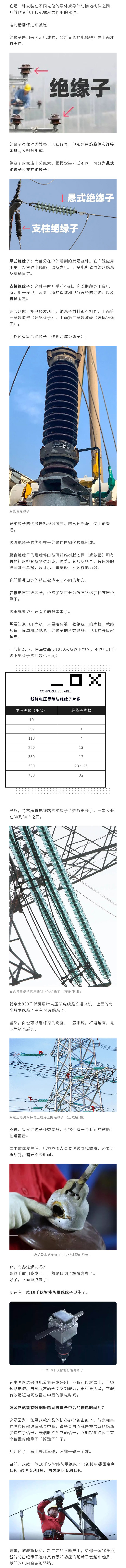 【get這個知識,你就是別人眼里的“專家”】前幾天,和小伙伴開車經(jīng)過一條田邊小路,看到路邊聳立著一座座鐵塔,很嘚瑟地問同行的小胖:“看見那些電線了么?你知道怎么分辨他們的電壓等級么?”看到小胖呆萌的小眼睛閃爍出對知識的渴望,我決定滿足他:想知道電壓等級,很簡單,數(shù)串串就行了。那個串串,就是上面的絕緣子。話說到這里,就先簡單介紹下絕緣子。這東西,即便是在電力系統(tǒng)工作的人都不一定能認全。它是一種安裝在不同電位的導體或?qū)w與接地構(gòu)件之間,能夠耐受電壓和機械應(yīng)力作用的器件。