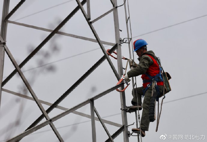 【勞模爬上鐵塔,隱患順利清除】1月16日,寒風凜冽,國網(wǎng)鄂州供電公司檢修分公司輸電帶電作業(yè)班長王志勇,手腳麻利地爬上了跨越武九鐵路的一座20余米的輸電線路鐵塔,小心翼翼地清理完塔上的鳥巢,確保輸電線路安全運行,進而保障春運期間鐵路交通安全通行。據(jù)了解,鄂州境內(nèi)共有126處輸電線路跨越鐵路、高速公路,目前已發(fā)現(xiàn)并處理各類隱患5起。