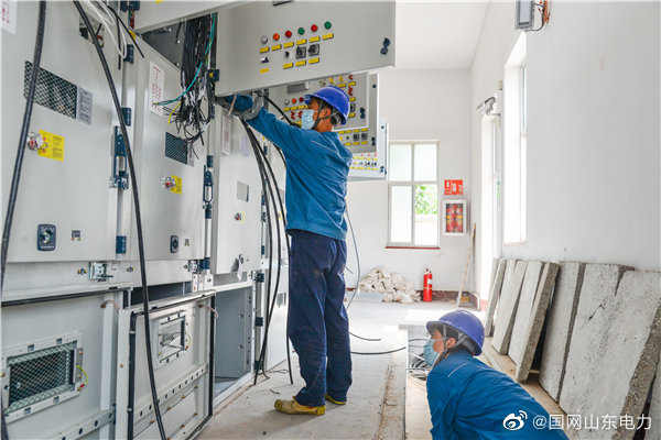 6月9日,在35千伏過西變電站10千伏開關(guān)柜改造工程現(xiàn)場,國網(wǎng)萊州市供電公司施工人員冒高溫在狹長的電纜溝內(nèi)敷設(shè)二次電纜2000余米,并逐一接線、測試,站內(nèi)光纖安裝、設(shè)備調(diào)試等同步進(jìn)行,工程完工后,將進(jìn)一步提升變電站設(shè)備運(yùn)行水平。 ????